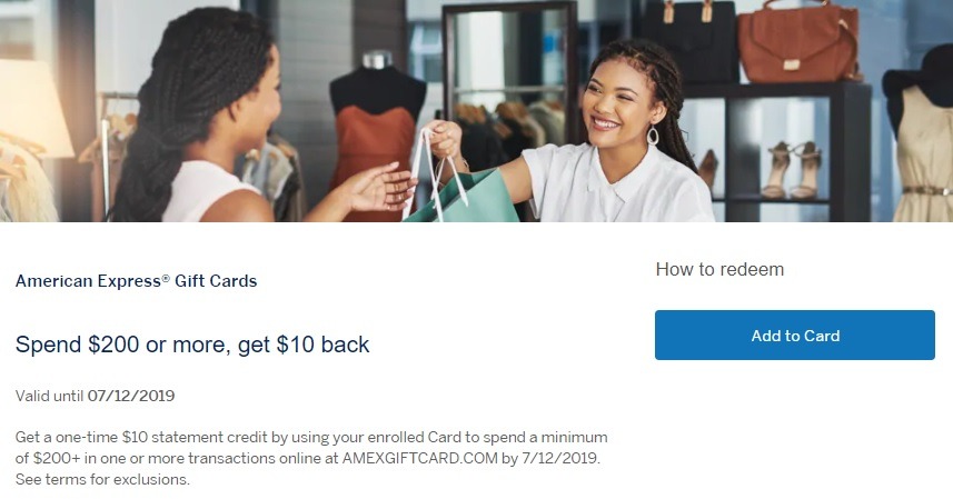 Amex Offers American Express Gift Cards Promotion 10 Statement