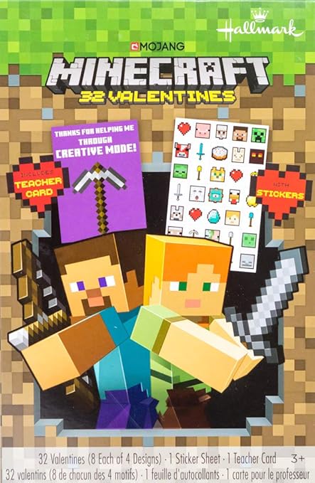Valentines Day Classroom Exchange Gift Minecraft 32 Valentines Includes Teacher Card Stickers 8 Each Of 4 Designs Kids Diy Daycare