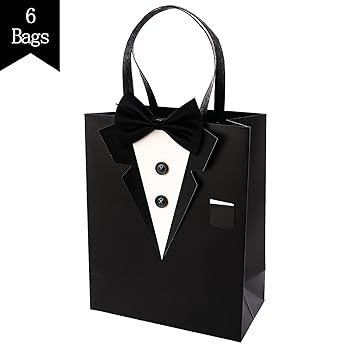 Crisky Classic Black Tuxedo Gift Bags For Groomsman Father S Birthday Anniversary Wedding Favor Bags 10 X8 X4 Set Of 6