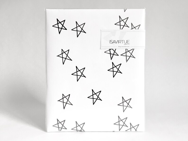 White Gift Wrap Black And White Modern Geometric Wrapping Paper Stars