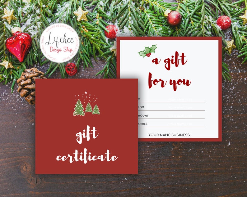 Printable Christmas Tree Watercolor Gift Certificate Template Editable Holiday Xmas Gift Card Microsoft Word Template Instant Download