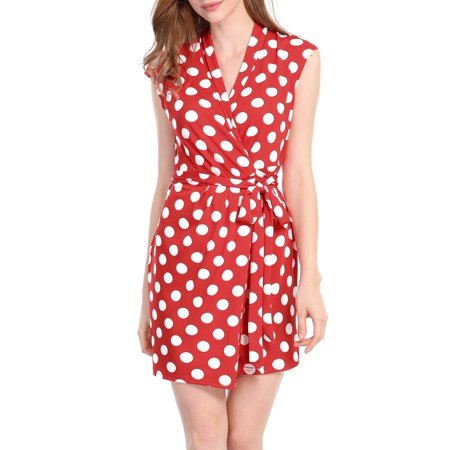 Mother S Day Gift Unique Bargains Women S Polka Dots Sleeveless Tie Waist Christmas Wrap Dress Red White Size 14