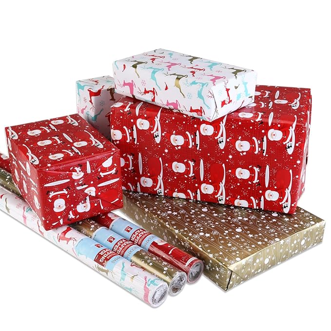 Wrapping Paper Christmas Wrapping Paper Roll Wrapping Paper Red Gold Colorful Gift Wrapping 3 Rolls