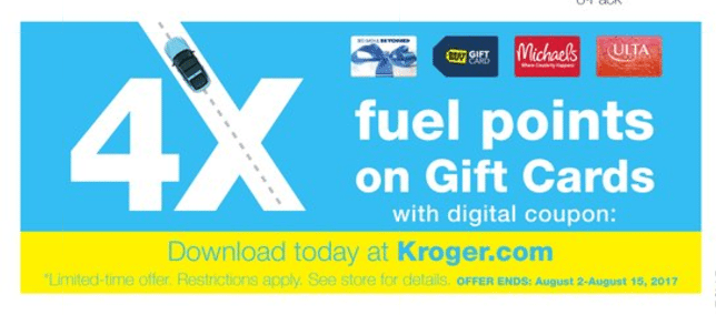 Kroger Digital Coupon Earn 4x Fuel Points W Gift Cards