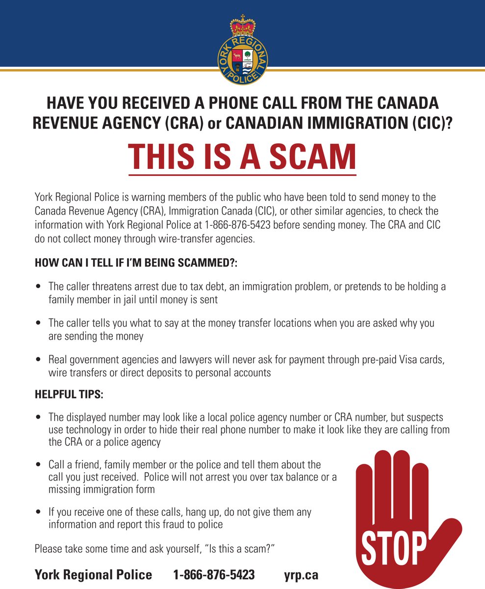 York Regional Police On Twitter The Latest Cra Phone Scam Has The