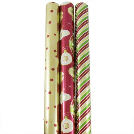 Jam Paper Wrapping Paper Premium Foil Gift Wrap 75 Sq Ft Christmastime Set 3 Pack