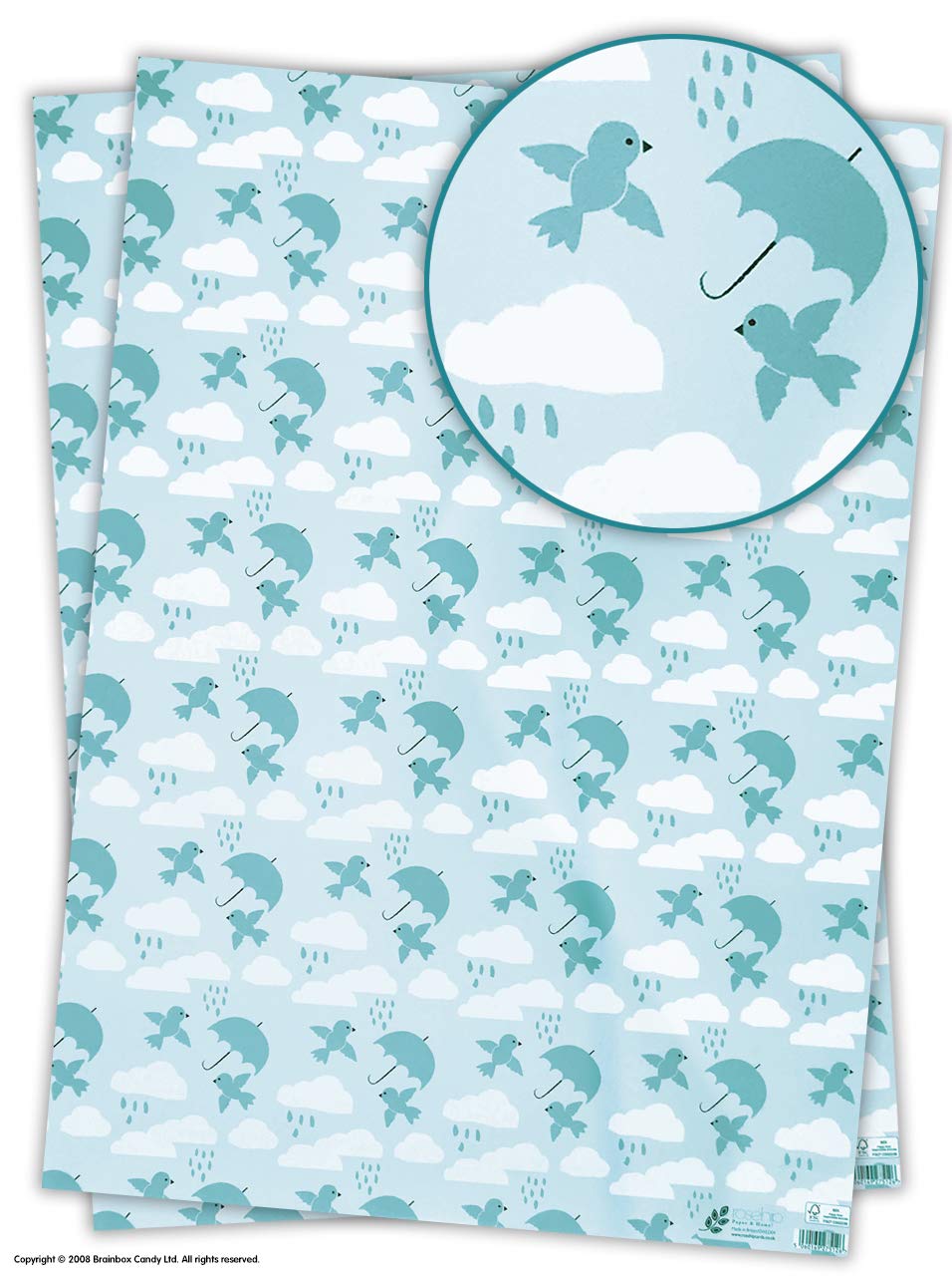 Pastel Umbrella Birds And Rainclouds Design Gift Wrap Flat Pack Of 25 Sheets