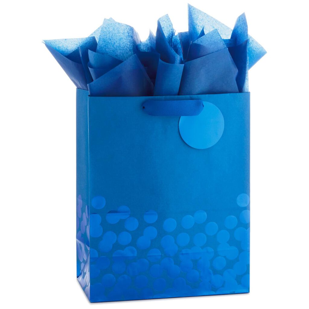 Blue Foil Dots Large Gift Bag With Tag And Tissue 13