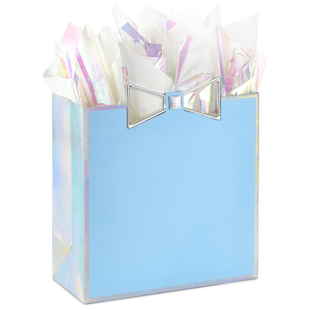 Blue Bow Large Square Gift Bag With Tissue Paper 10 25