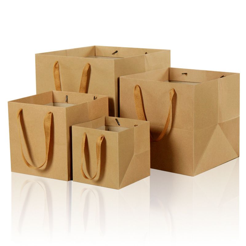 Xs Brown Paper Bag More Size Flowers Square Bottom Gift Bag General Advertising Jewelry Packaging Wholesale