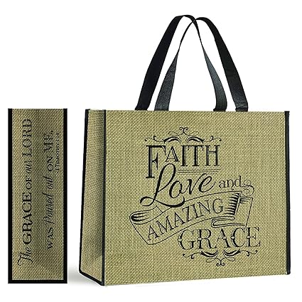 Faith Love And Amazing Grace Lord Burlap Look 20 X 17 5 Inch Giant Nylon Tote Bag With Handles Pack Of 2