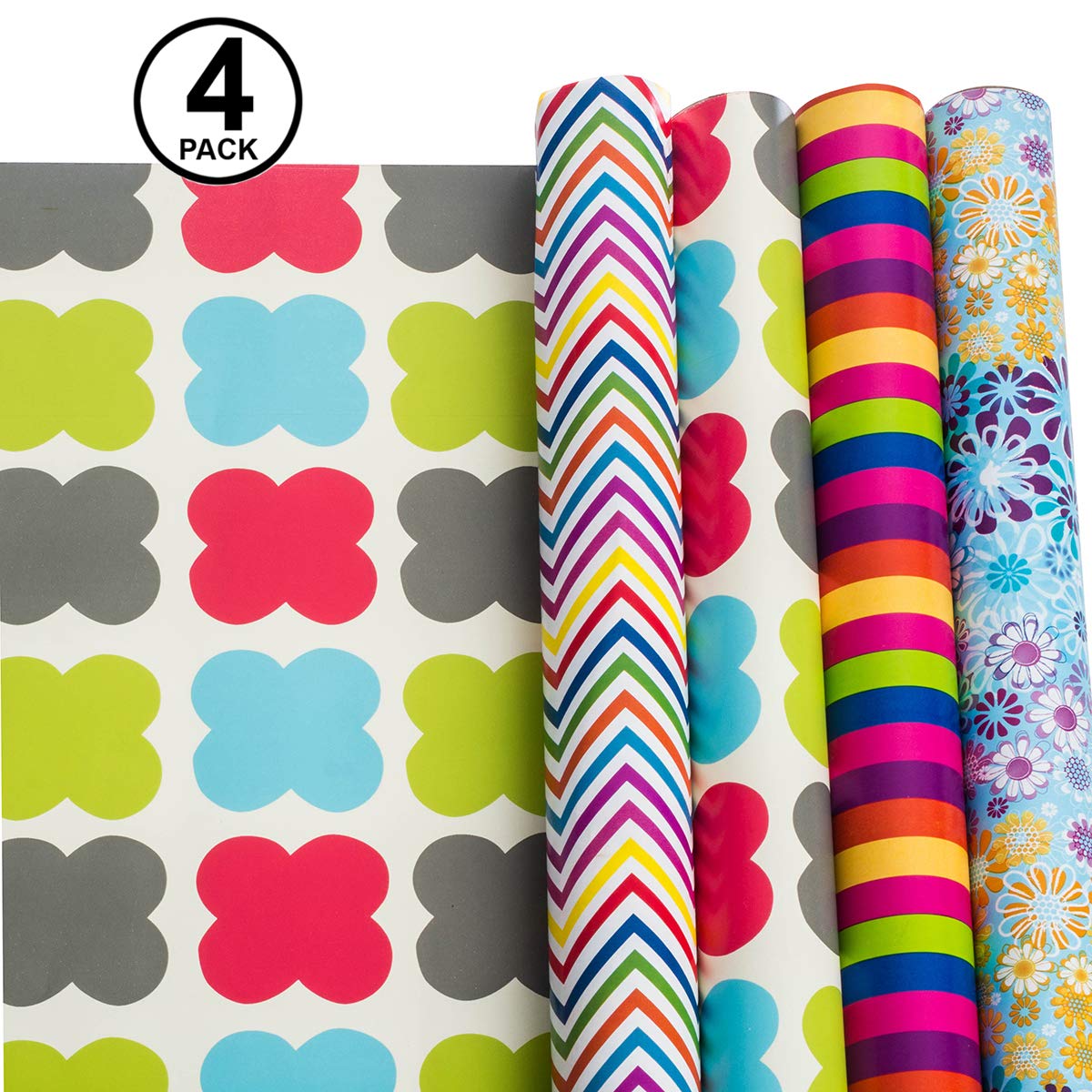 Gift Wrapping Paper All Occasion Wrapping Paper Wrapping Paper Premium Gift Wrap 4 Rolls 2 5 Ft X 10 Ft Per Roll Includes 7 Bows 2 Rolls Of