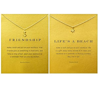 Hundred River Friendship Clover Necklace Unicorn Good Luck Elephant Necklace With Message Card Gift Card For Women Girl 2pack