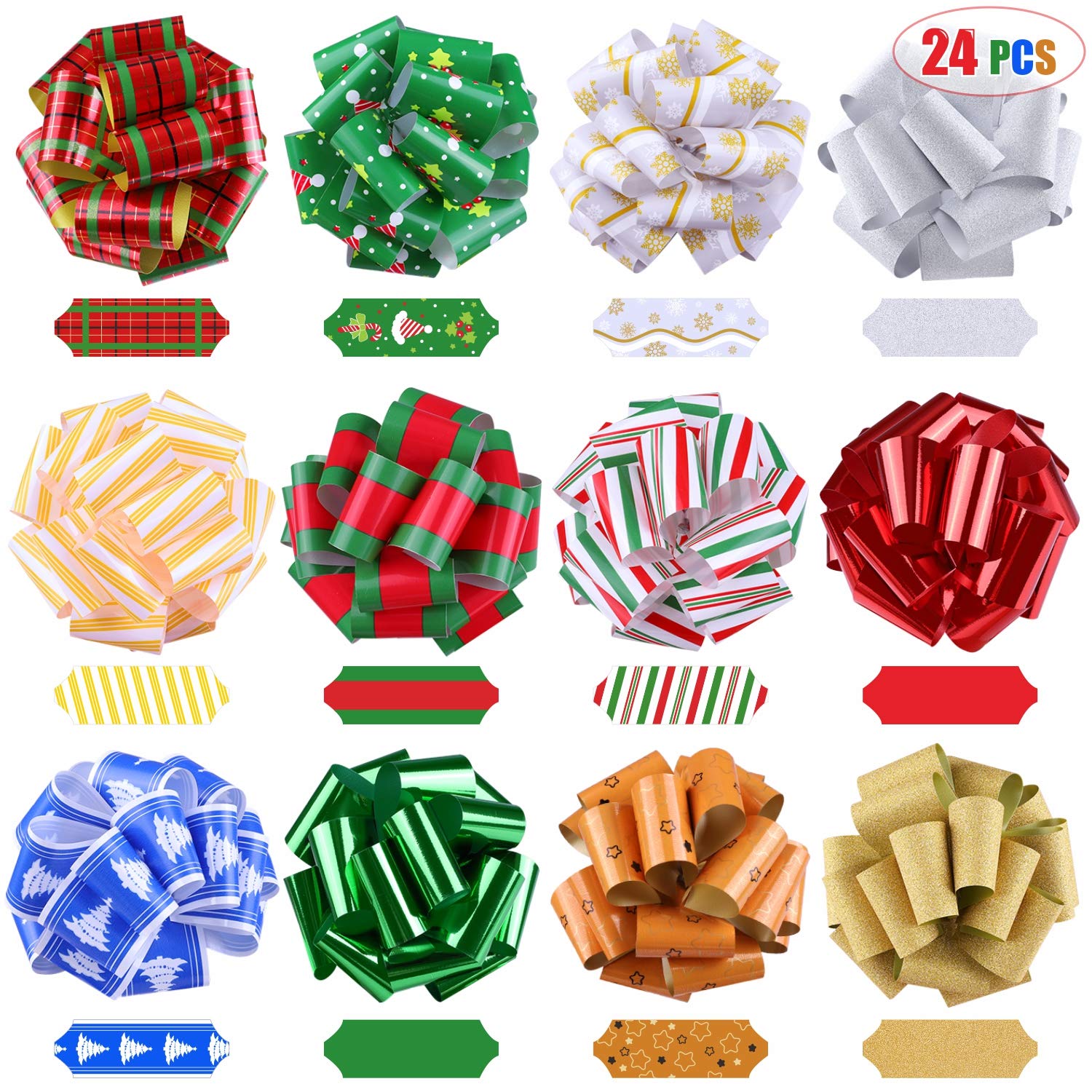 24 Pieces 5 Wrap Ribbon Pull Bows Assorted Christmas Gift Wrapping Ribbon Accessories Bows Wine