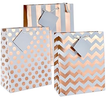12 Gift Boutique Medium Metallic Rose Gold Gift Bags Polka Dots Stripes Chevron Exquisite Designs