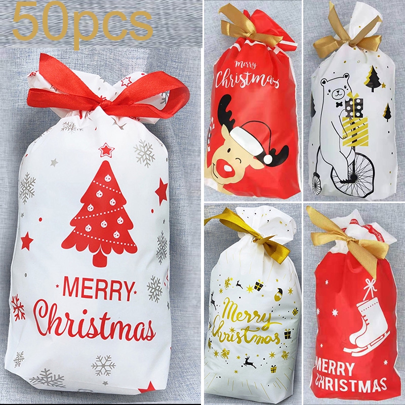 50pcs Kantong Permen Model Tali Serut Untuk Dekorasi Natal