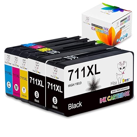 Miss Deer 711xl 711 Xl Ink Cartridge 5 Pack Ink Cartridge Replacement For Hp Printer Designjet T120 24 Inch T520 2 Black 1 Cyan 1 Meganta 1
