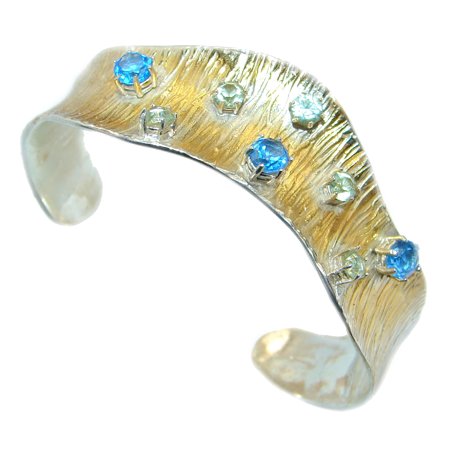 Authentic Blue Topaz Twom Tones Sterling Silver Bracelet