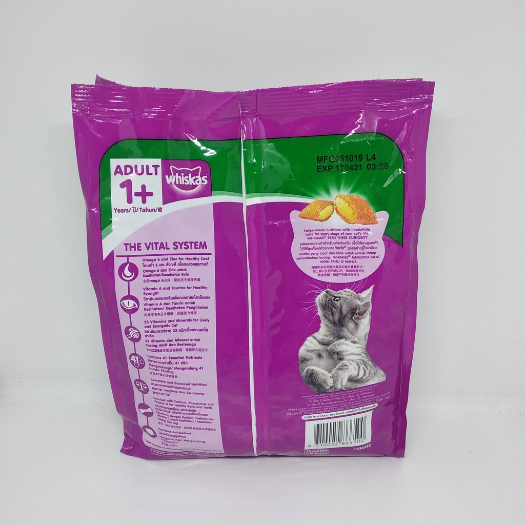Whiskas Adult 1 Plus 480gr Makanan Kering Kucing Dry Cat Food