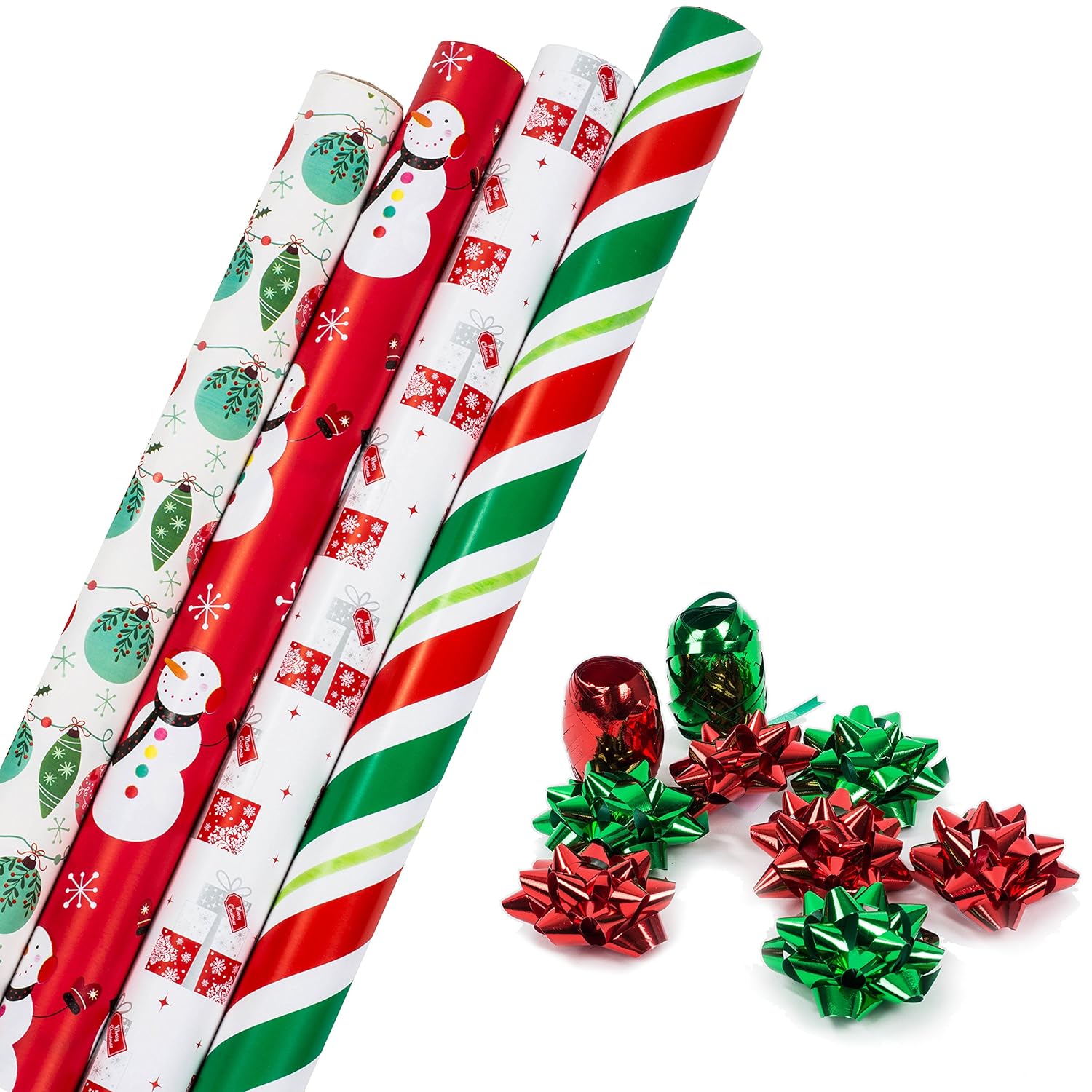 Tablesto Christmas Wrapping Paper Holiday Wrapping Paper Bundle 4 Rolls Bright Red Green And White