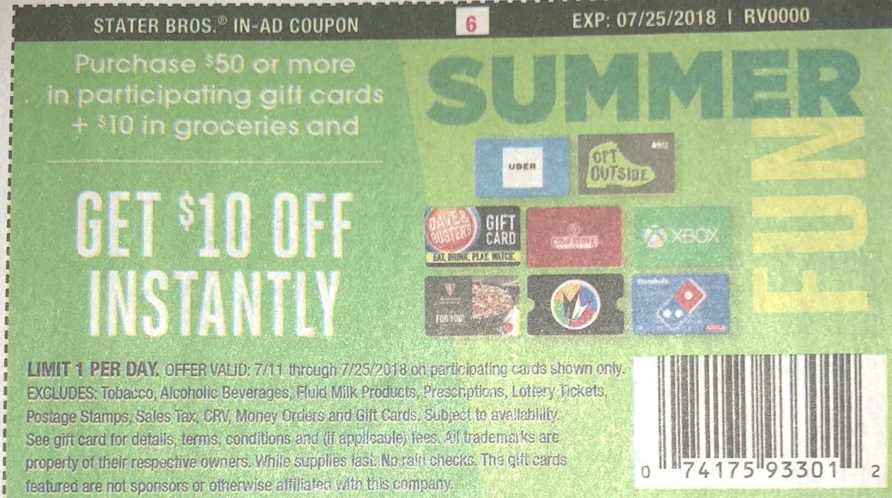 Stater Bros 20 Discount On Select Gift Cards Ca Danny The Deal