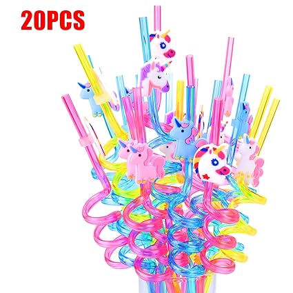 Gearroot 20pcs Unicorn Party Favors Reusable Straws