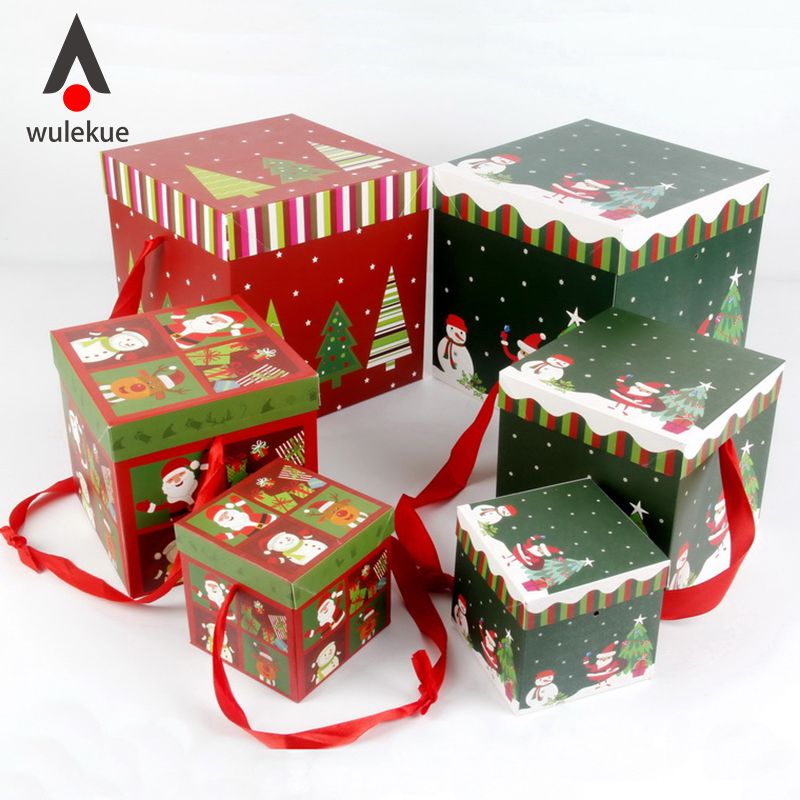 Wulekue 1set Christmas Paper Gift Box Xmas Home Decor Party Decoration Festival New Year Party Boxes Present Package