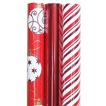 Premium Glitter Christmas Holiday Gift Wrapping Paper Rolls 3 Pack