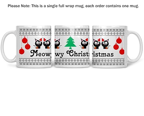 Meowy Christmas Wrap Around Mug 11oz Ceramic Coffee Cup Xmas Gift For Family And Friends Funny Secret Santa Christmas Holiday Gifts By Cbt