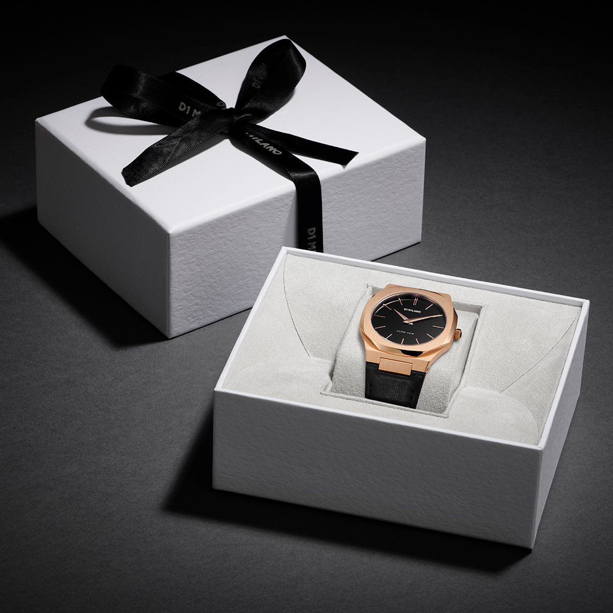 D1 Milano Ultra Thin Classic Utlj03 Rose Gold Black Dial Black