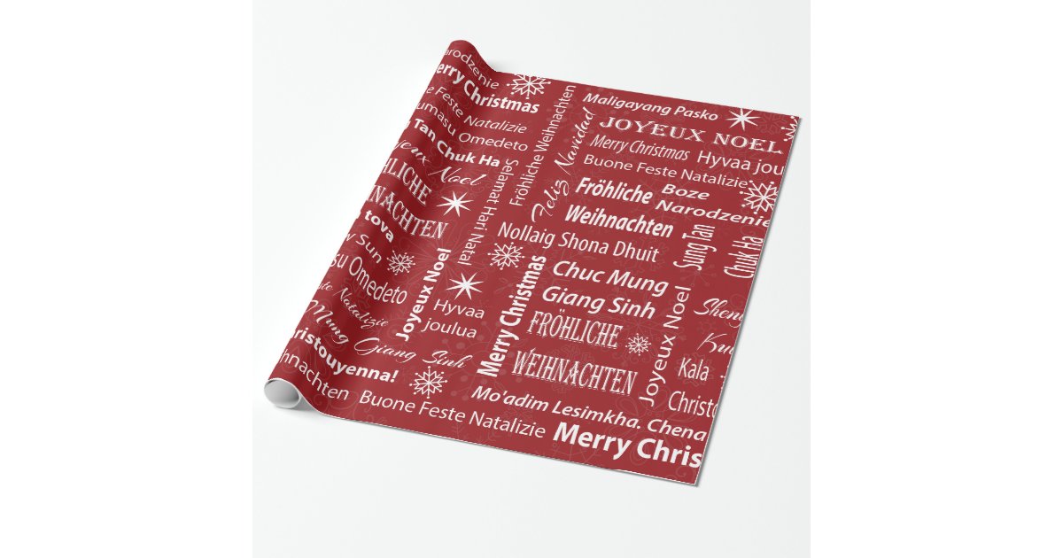 Red Merry Christmas In Other Languages Gift Wrap Zazzle Com