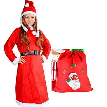 Santa Suit Adult Women Santa Claus Costume With Gift Bag For