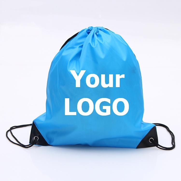 Customize Drawstring Polyester Tote Bags Logo Print Advertising Waterproof Backpack Folding Bags Marketing Promotion Gift Shopping Bags