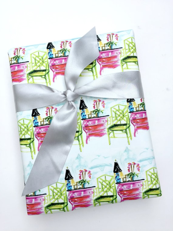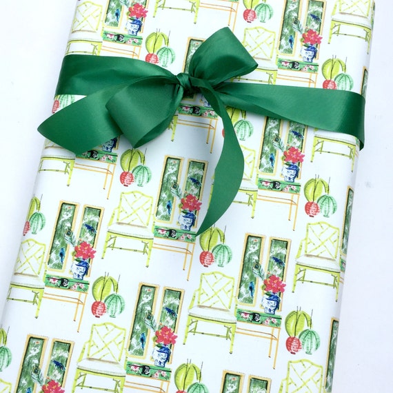 Chinoiserie Wrapping Paper Roll Gift Wrap Pink Green Foo Etsy