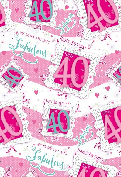 2 X Sheets Happy 40th Birthday Fabulous 40 Gift Wrap Pink Wrapping